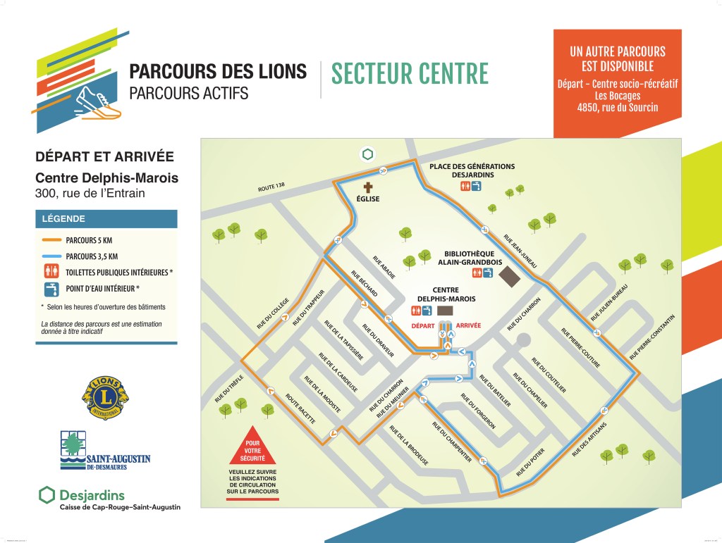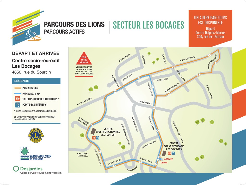 Les « Parcours des Lions – Parcours Actifs » consistent en deux circuits balisés de marche et de course à pied dans chacun des deux pôles résidentiels (secteur Centre et secteur Les Bocages) de la Ville de Saint-Augustin-de-Desmaures.