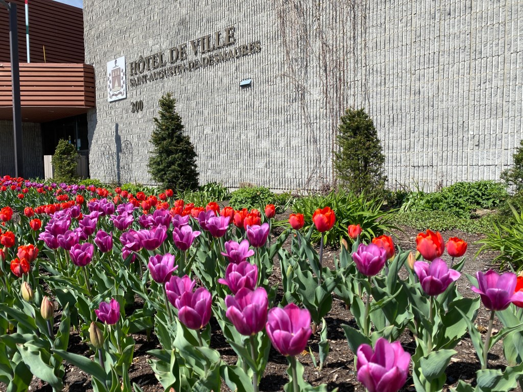 En été, des plates-bandes colorées et diversifiées sont soigneusement entretenues par l’équipe des Travaux publics. L’hiver, c’est l’équipe du Service des bâtiments qui se charge de l’illumination.